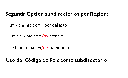Para dar continuidad a la entrada web multilenguaje, donde se comentaba más cómo resolver con ficheros de recursos una web con varios idiomas, aquí comentaremos los puntos relacionados con la localización y optimización para buscadores. Así si queremos un portal, en varios idiomas localizado en contenidos y que indexe bien en buscadores de varias regiones, veremos que estructura de páginas nos conviene más dentro de nuestras posibilidades técnicas y presupuesto. Los cuatro tipo de soluciones que compararemos serán: 1) dominio tld agnóstico y uso de ficheros de recursos, 2) dominios cctld para cada localización, 3) subdominio por localización, 4) subdirectorio por localización. Enumerados los tipos de estructuras, detallando en el diagrama alguna de ellas veamos que criterios usaremos para calificarlas como mejor o peor adaptadas a un portal multilenguaje.